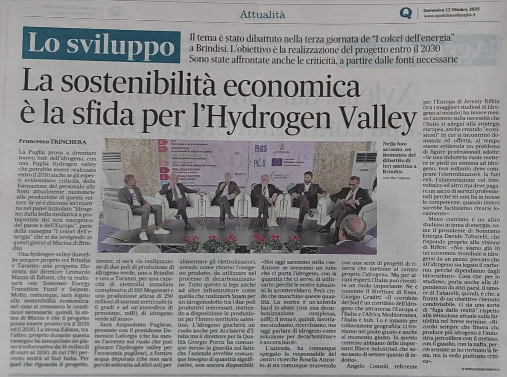 Il nostro presidente Angelo Consoli, relatore in un panel “I Colori dell’Energia”, nei giorni scorsi ha messo l’accento sulla necessità che l’Italia si adegui alla strategia europea, anche creando “ecosistemi” in cui si incontrino domanda ed offerta, evidenziando un problema di figure professionali adatte: “Se una industria vuole mettere in piedi un sistema ad idrogeno, non soltanto deve compre l’elettrolizzatore, la fuel cell, l’alimentazione con il fotovoltaico ed altro ma deve acquisire un sacco di servizi professionali perchè non ha in house le opportune competenze, quando invece sarebbe facilissimo crearle localmente”.